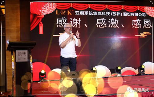 At 17:30 on December 27, 2019, the 2019 Year-end Dinner and Award Party of L&K Engineering was held at Four Points by Sheraton in beautiful Dushu Lake Moon Bay, Suzhou. Mr. Yao Zuxiang - Chairman of the Company, Mr. Mao Zhihui – General Manager (GM), Ms. Chen Shuzhen – Senior Vice GM, Mr. Yang Zhengyu – Vice GM and other Senior Officers attended the ceremony.