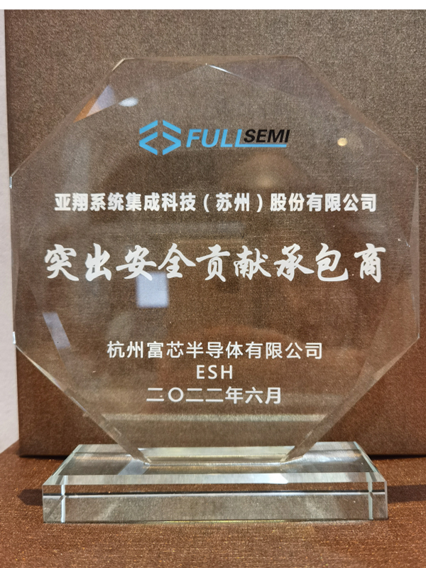 亞翔集成榮獲杭州富芯項目?jì)?yōu)秀安全承包商和突出安全貢獻承包商等獎