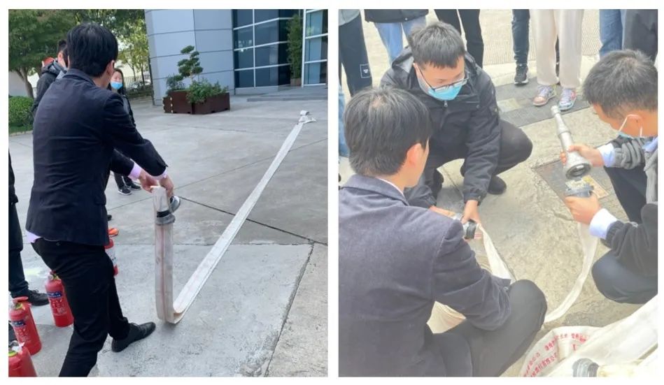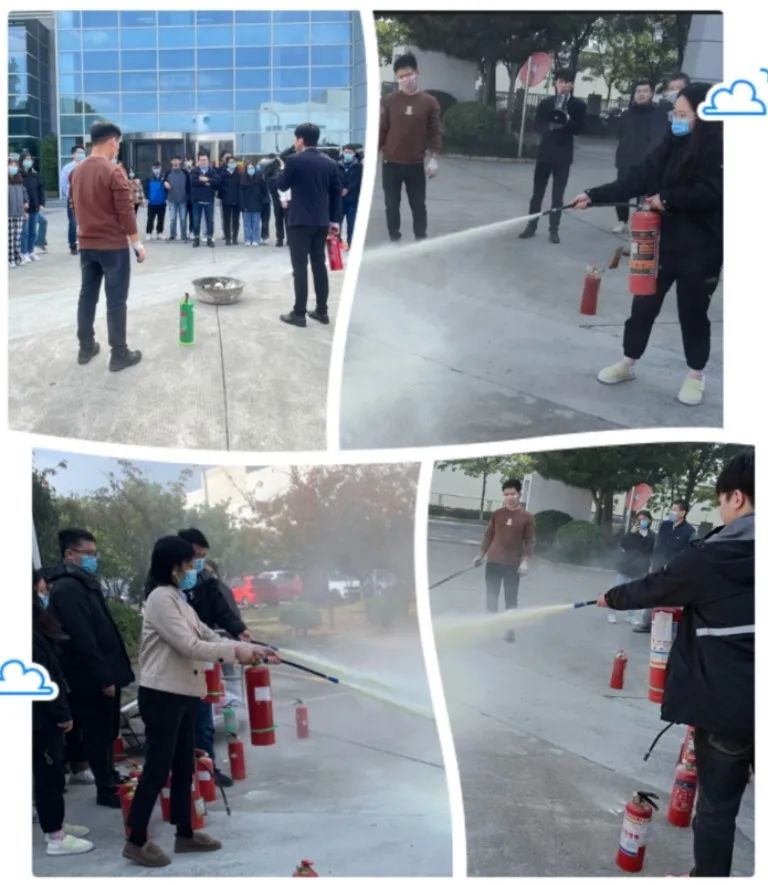 孔教員介紹干粉滅火器及消防水帶的使用方法,現場(chǎng)員工排隊參加了滅火演練。通過(guò)演練,實(shí)現了理論與實(shí)際相結合,使得每位員工都能很好地掌握滅火器的使用方法及消防水帶的連接方法。