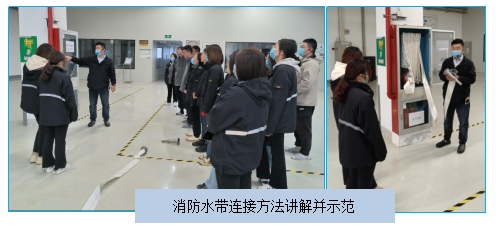 現場(chǎng)指揮馮工講解并示范了消防水帶的連接方法及使用方法。隨后員工進(jìn)行消防水帶的連接實(shí)操,實(shí)操完畢,由搶險救援組同仁配合進(jìn)行了消防水帶噴水實(shí)操,各位同仁積極參與實(shí)操演練環(huán)節。